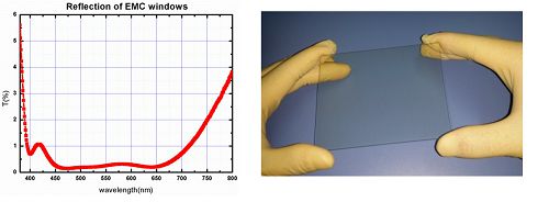 电磁屏蔽窗口的反射谱(左)和产品照片(右)