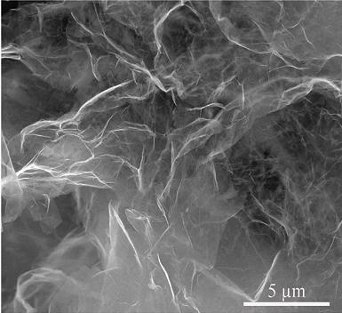 图2. 高质量薄层石墨烯产品微观形貌图 (Few layer graphene 表现出有褶皱的薄纱状形貌结构,形貌和厚度与具有几个原子层的氧化石墨烯(GO)可比,而不同于几个纳米以上厚度的石墨片层体现的硬片状形貌)。