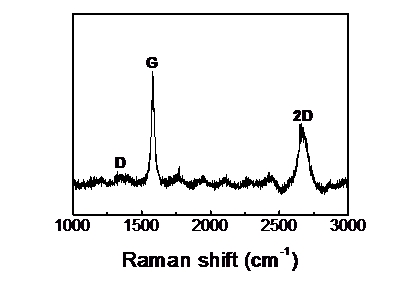 图3. 高质量薄层石墨烯产品Raman谱。微弱的无序峰(D峰),和原料D峰可比,制备过程没有引入缺陷等无序结构,反应出石墨烯产品的高质量。