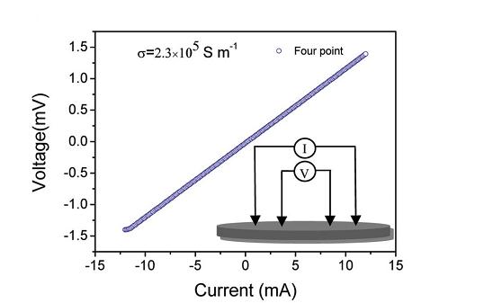 图4. 高质量薄层石墨烯粉体压膜的高电导率。保留了石墨片层本征高导电性能。