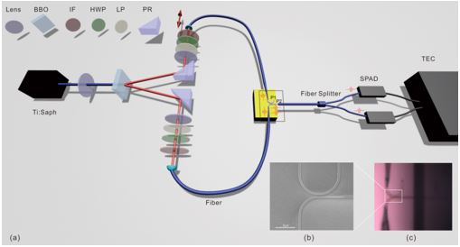集成光学芯片近年来越来越引起人们的关注,它具有尺寸小、可扩展、功耗低、稳定性高、信号传输速度快等诸多优点,在经典光学中已获得了广泛应用。近年来,在量子信息领域的研究也得到了巨大关注和发展,量子逻辑门和Shor算法都已经在量子集成光学芯片中得到了演示。表面等离子激元作为新的信息载体也开始被引入到这一领域中来,因为它可以突破衍射极限,将能量束缚在亚波长尺寸的波导中传播,从而能进一步提高集成光学芯片的集成化程度。但是表面等离子激元在量子信息中的应用研究面临两个主要问题:一是目前在表面等离子激元波导结构中实现的量子干涉的可见度小于50%,低于量子和经典的界限,且不能认为是真正的量子干涉;二是表面等离子激元结构存在固有损耗,这种损耗会不会对量子干涉的可见度产生影响,从而限制其在量子集成光学芯片中的应用,迄今还存在争论。