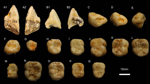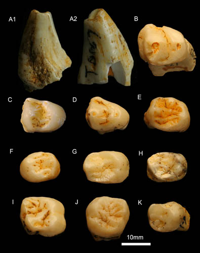 图1 三合大洞化石猩猩上颌牙齿(王翠斌供图)
