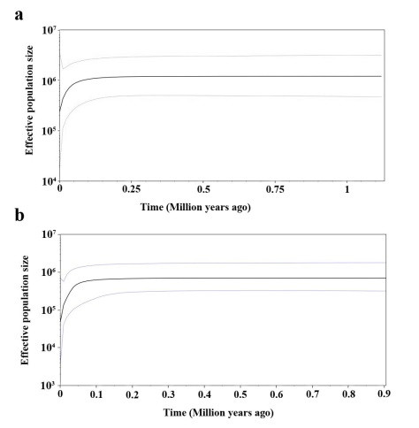 在龚洵研究员和云南大学王跃华教授的指导下,博士生冯秀彦基于2个叶绿体和1个核DNA分子片段序列以及16个微卫星,对野外采集到的7个单羽苏铁居群的遗传多样性、遗传结构和种群动态历史进行了研究。研究发现:1) 该物种在物种水平上存在高的遗传多样性,而在居群水平上遗传多样性低、居群间遗传分化高。2) 单羽苏铁存在一个明显的遗传结构,但无显著的亲缘地理结构。3) 种群动态历史检测该物种在历史上一直保持种群动态平衡,直到距今约5万年时发生了居群收缩事件,之后并未发生居群扩张,基于溯祖理论,该物种大多数单倍型的分歧时间约在更新世晚期。4) 瓶颈效应分析该物种未经历近期的瓶颈效应,但历史上曾发生过居群收缩事件,DNA序列和微卫星分析得到了一致的结果。
