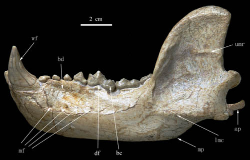 图4 戴氏祖熊下颌骨侧面(邓涛供图)