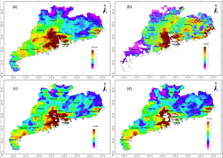 该研究得到国家“863”课题、科技支撑项目及有机地球化学国家重点实验室前沿项目资助,同时得到NASA及广东省统计局提供的数据支持。