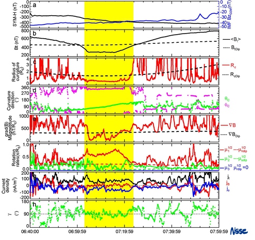 地磁力线的这种拓扑结构变化对环电流区域、等离子体层区域以及辐射带区域的粒子动力学过程具有重要影响。首先,磁力线几何结构的变化将引起这些区域各能段带电粒子的重新分布,更加向外延伸。其次,磁暴期间磁力线曲率半径以及磁场强度的减小将打破辐射带部分高能质子第一绝热不变量的守恒性,使其通过场线散射过程损失于大气层,从而确认磁暴场线散射效应是质子辐射带的一种重要损失机制。最后,由于环电流产生的磁场扰动值可与当地磁场相比,应该考虑环电流的磁能,磁暴DPS能量-磁扰动关系必须加以修正。此项成果在2013年度EGU会议期间报告,引起了国际同行广泛积极反响。