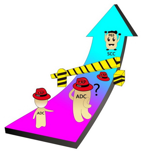 YAP作为肺腺鳞癌转分化过程中重要的分子障碍。(ADC: 肺腺癌; SCC: 肺鳞癌)
