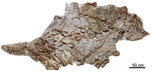 甲龙类是一类全身披有盾甲的植食型恐龙,生活时代从早侏罗世一直到晚白垩世。演化上主要有两个分支,即甲龙科和结节龙科。它们的主要区别是甲龙科具有尾锤而结节龙科没有尾锤,但是最新的系统演化分析表明尾锤仅存在于进步的甲龙亚科中,原始的甲龙科中也是没有尾锤的。朝阳传奇龙正属于这样一种原始的甲龙科成员。尾锤被认为是一种甲龙最有效的防御武器,它是如何起源和演化的呢?朝阳传奇龙保存有较好的尾椎,对于该问题的解决具有重要的意义。