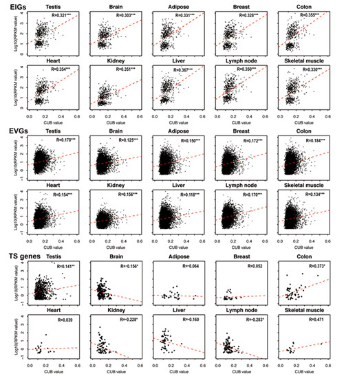 在北京基因组所高性能计算平台的有力支撑下,研究发现人类基因中也存在翻译选择,但与细菌以及酵母不同的是,翻译选择并非仅与表达量密切相关。通过高通量测序数据,研究团队将人类基因按照表达模式分为三类:组织特异基因(仅在一个组织中表达,Tissue-Specific Genes)、普遍表达但表达水平可变的基因(Expression Variable Genes;EVG)、普遍表达且表达水平相对恒定的基因( Expression Invariable Genes;EIG)。通过这三类基因的比较分析发现,EIG的表达量与密码子使用偏好性存在相对较强的相关性,进一步分析显示这种较强的相关性并非完全与高的表达量相关。通过与tRNA使用频率的关联分析,发现EIG对最优密码子的使用存在明显偏好。这一研究结果显示,在大量组织中表达且表达水平相对恒定的EIG基因,受到了明显的翻译选择。与TS和EVG相比,EIG的密码子使用偏好相对更多来自于翻译选择的作用。