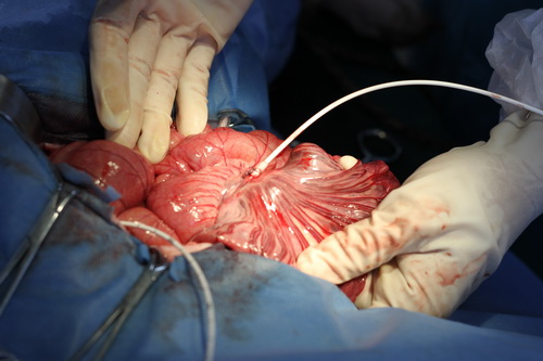 在印遇龙院士的支持与姚康研究员率领下,中国科学院亚热带农业生态研究所动物手术团队吴飞、黎俊、蒋谦、李建军等通过数月的实践积累终于攻克了安装多个血插管手术的难题,成功地在猪体内完成了颈动脉-门静脉-肠系膜静脉-股动脉-股静脉的血插管安装手术。团队也由此摸索总结出了一套稳定可行的手术方案,建立了一套完整的血液营养分析评估体系,为猪的营养代谢的深入研究创造了更加有利的条件。
