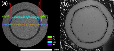 在此基础上,课题组近期再次进行创新。利用Fe-Cu难混溶合金体系的液-液相分离现象,采用课题组特色的无容器气动悬浮技术,使富Fe相和富Cu相在Marangoni对流、Stokes沉积等效应协同作用下自发形成核壳结构,制备出外层Fe包覆Cu的金属相变储热胶囊。同时,通过控制氧分压,使外层Fe原位部分氧化形成氧化层,进一步增强了金属胶囊的耐磨性和实用性。相关成果发表在Applied Energy 期刊上(Bingqian Ma, Jianqiang Li, et al. 2014, 132, 568-574, 论文链接)后,很快引起国内外同行的关注,CSIRO、南澳大利亚大学、新加坡UTD的多位学者表示浓厚兴趣,愿意共同推进该类材料在太阳能热利用和工业余热方面的应用。