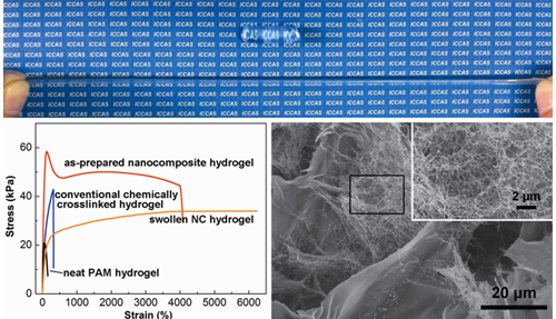 PAM/LDH纳米复合水凝胶的超级可拉伸性能与微米-纳米多级网络结构