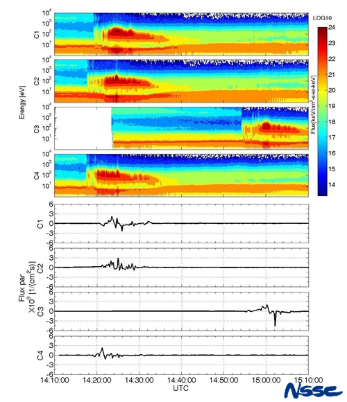 近日,中国科学院国家空间科学中心空间天气学国家重点实验室科研人员史建魁、张子迎、程征伟等根据Cluster卫星的观测数据分析,在极尖区发现了通量最大的场向电子扰动事件,并首次对场向电子事件的时空尺度进行了分析。该研究成果发表在美国地球物理学会(American Geophysical Union, AGU)学术期刊《地球物理期刊》(Journal of Geophysical Research)上。