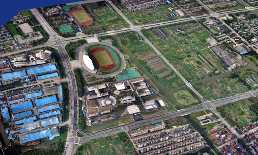 四光学相机无人机遥感系统利用的倾斜摄影测量,打破了传统正射摄影垂直拍摄建筑物屋顶的局限性,可以从多个角度完整地获取建筑物表面的纹理信息,为智慧城市建设提供基础地理信息支撑服务。为验证该系统的可行性,虚拟地理环境团队选取在智慧城市建设较为领先的苏州、嘉善进行试验飞行。其中,8月3日,龚建华研究员与骆剑承研究员带领团队在苏州高新产业园完成了5平方公里的无人机倾斜摄影试验飞行,并完成了三维模型重建;9月5日,研究室与浙江中科空间信息技术应用研发中心合作,对浙江嘉善新城区15平方公里区域进行了无人机倾斜摄影飞行作业,完成了高精度的三维模型制作。