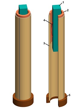 蜘蛛马达示意图:1.钽滑块,2.不锈钢圆筒导轨,3.压电扫描管 4.弹簧片 5.蓝宝石底座