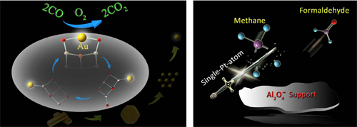 原子团簇负载的(左)Au原子催化氧化CO(右)Pt原子室温活化转化CH4