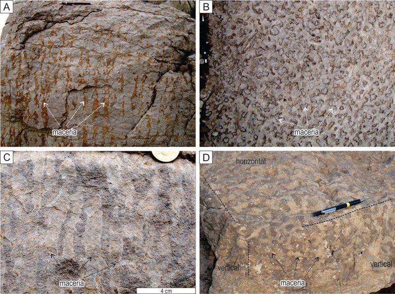 图1. 华北台地广泛发育的典型的芙蓉统“迷宫状”海绵—微生物礁近照特征