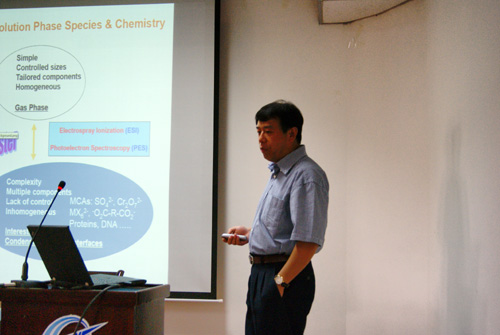 作为特聘研究员,王学斌研究员为安徽光机所科研人员带来了题为“低温光电子能谱的离子/分子团簇研究”的学术报告,报告介绍了具有分子特异性和可控组分的离子、分子团簇,以及西北太平洋国家实验室在相关方向的最新研究成果,并对碱性阳离子和二羧酸根阴离子之间的特殊交互作用、与环境相关的重要阴离子的逐步水化过程、二自由基体系的固有电子结构、均相催化方面重要的气态有机金属化合物研究进行了详细解读。