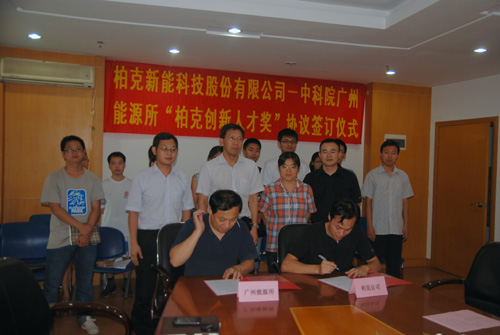 7月16日下午,佛山市柏克新能科技股份有限公司-中科院广州能源研究所“柏克创新人才奖”协议签约仪式在广州能源所举行。柏克新能科技股份有限公司总经理罗蜂、广州能源所党委书记马隆龙等出席仪式。