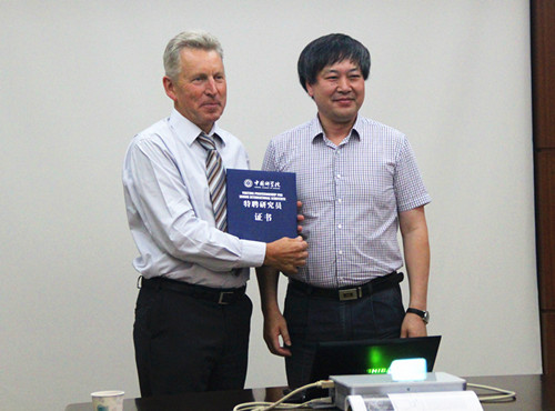 9月13日上午,中科院固体物理研究所举行“中国科学院外国专家特聘研究员”聘任仪式,固体所所长蔡伟平和副所长曾雉出席了仪式。蔡伟平为国际知名凝聚态物理理论专家、比利时安特卫普大学的Francois M. PEETERS教授颁发了聘书。