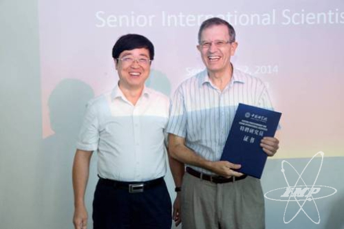 9月2日上午,中国科学院近代物理研究所所长肖国青代表中国科学院,为西班牙Valencia 大学Eulogio OSET BAGUENA教授颁发了“中国科学院特聘研究员”证书,并举行了学术报告会。