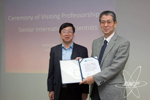9月16日上午,中国科学院近代物理研究所所长肖国青为日本东京大学Shigeru KUBONO教授颁发了“中国科学院特聘研究员”证书,并举行了学术报告会。