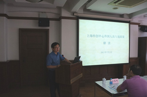 衡晨敏介绍了外国人出入境、住宿登记和安全防范三个方面的规定。针对上海生科院的特点,他详细解读了工作类居留许可和访问交流类签证延期手续,并讲解了住宿登记的注意事项和新推出的签证便利措施。蔡宝弟详细解读了今年7月新出台的“上海科创中心”外国人出入境政策,并对外国人永久居留许可、长期居留许可、R字(人才)签证的申办进行了重点讲解。讲座后,听众踊跃提问,两位处长一一答疑。