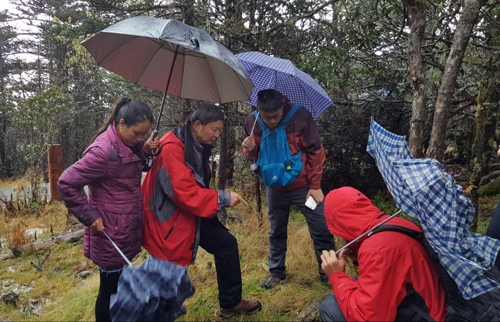 科考实习期间,恰逢螺髻山经历剧烈的天气变化过程,在实习地大幅降温、降雨且最高海拔达到4000米左右等不利条件下,研究生们在科考过程中冒着风雨、忍受严寒,认真听讲、积极思考,不惧艰苦、团结互助顺利地完成了既定任务。