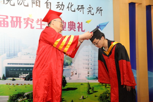 学位评定委员会副主席、党委书记兼副所长桑子刚宣读了《沈阳自动化所学位委员会关于授予16名毕业生学位和拟授予58名毕业生学位的决定》。在激动人心的乐曲声中,沈阳自动化所学位评定委员会主席、所长于海斌为每一位毕业生扶正流苏,颁发学位证书和毕业生纪念戒指,并一一合影留念。