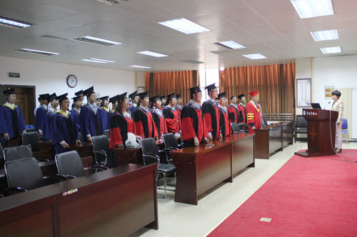 毕业典礼在庄严的国歌声中拉开帷幕。王敏宣读了青海盐湖所学位评定委员会确定的拟授学位研究生名单,所学位评定委员会主任吴志坚为拟授学位研究生依次扶正流苏,并握手表示祝贺。