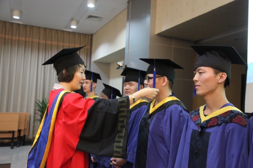致辞结束后,毕业生们依次走上前台,叶甜春,副所长、国科大微电子学院副院长周玉梅庄重地为毕业生扶正流苏。