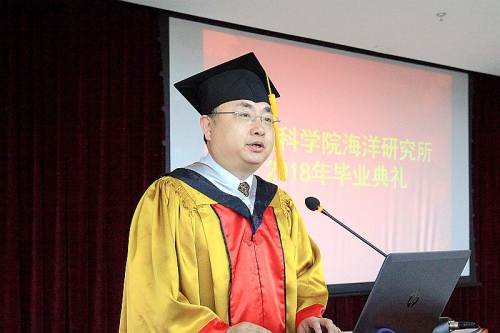 典礼在雄壮的国歌声中拉开序幕。副所长李超伦宣读了2018年通过毕业答辩的108名学生名单,其中硕士研究生40人、博士研究生68人,涵盖了物理海洋学、海洋化学、海洋生物学、海洋生态学、海洋地质学、水产养殖、环境工程、海洋药物学等专业学科。常务副所长杨红生宣读了获得国家、山东省、中科院及海洋所等各类奖项的优秀毕业生名单。