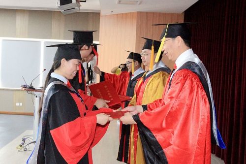 所长王凡、常务副所长杨红生、副所长李超伦共同为毕业生扶流苏、颁发学位证书,并合影留念。