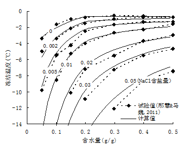 克拉佩龙(Clapeyron)方程是物理化学中一个重要的方程,其表达了纯物质两相平衡时温度与压力的关系,通常用来预测纯物质(如水)在不同压力下的冻点。在此基础之上,中国科学院武汉岩土力学研究所科研人员考虑土颗粒表面吸附、毛细和溶质对孔隙水能量状态的影响,推广了克拉佩龙方程的适用范围,将冻土土水压力与温度、冰压力和盐分浓度联系起来。应用改进的克拉佩龙方程,可得到不同含水量和含盐量土的冻结温度表达式,还可以计算不同盐分和压力条件下冻土中的未冻水含量。计算值与文献中实测数据对比表明,推导的冻结温度计算式成功地表现了冻结温度随盐分浓度增大和含水量减小而降低的特点,未冻水含量计算方法准确地表现了未冻水含量随温度降低而减小、随浓度增大而增大的特点。文中提出的计算公式将有助于促进冻土本构模型、相变传热和未冻水迁移问题的研究。