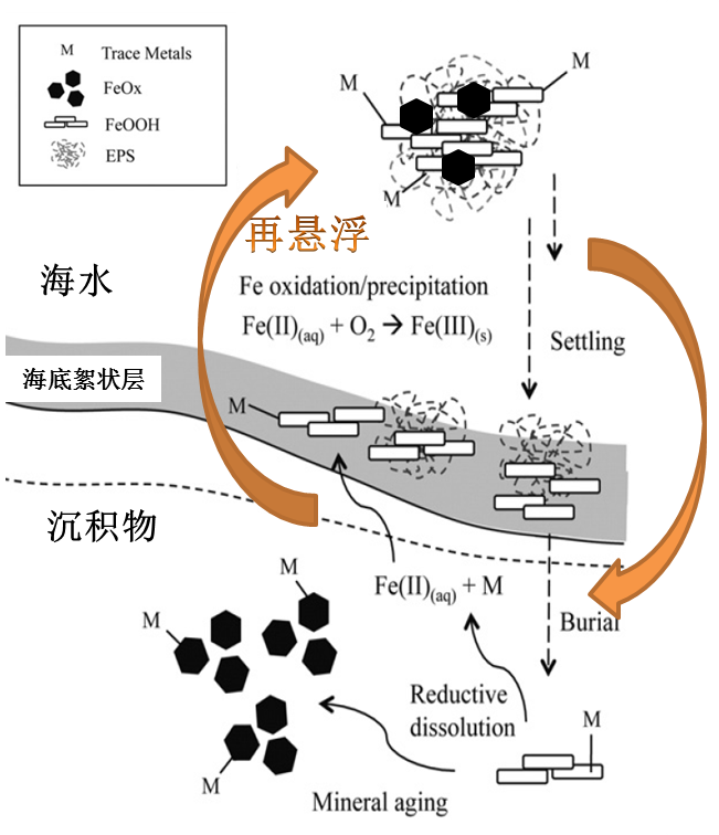 沉降颗粒物是近岸环境中重要的痕量元素“汇”,一是有机质-Fe的聚合体对水体痕量元素具有很强的清除能力,二是沉降的生源颗粒中痕量元素比主量元素更易被再矿化,强烈的再悬浮作用加速了颗粒物物质的循环,生源颗粒的降解对痕量元素的净释放和Fe/Mn氧化物结合相的清除作用明显。对胶州湾表层沉积物再悬浮以及沉降颗粒物的系统研究,对诠释强人为活动影响下浅海的生态环境变化机制以及资源环境的可持续利用意义重大。