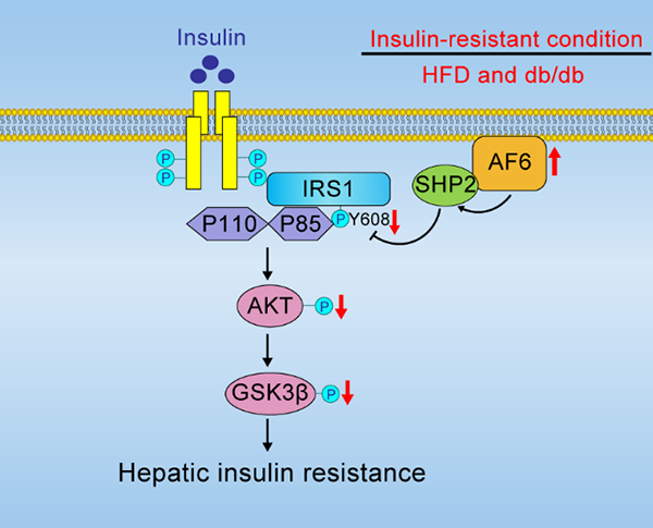 5月24日,国际学术期刊Diabetes在线发表了中国科学院上海营养与健康研究所詹丽杏研究组的研究成果“Polarity Protein AF6 Controls Hepatic Glucose Homeostasis and Insulin Sensitivity by Modulating IRS1/AKT Insulin Pathway in an SHP2-dependent Manner”。该研究发现极性蛋白AF6(afadin and MLLT4)能够通过结合酪氨酸磷酸酶SHP2并且上调SHP2的活性抑制IRS1/AKT通路,并证明糖尿病小鼠肝脏中敲减AF6蛋白表达可以有效提高胰岛素敏感性并缓解胰岛素抵抗。