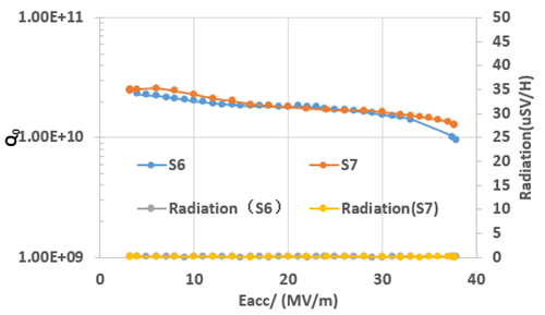 研制完成的两只1.3 GHz单cell超导腔,2K垂直测试下加速梯度Eacc达到37MV/m,对应Q0约为1×1010;在16MV/m梯度下Q0约为1.9×1010。这是在国内加工及电抛光工艺后处理后加速梯度最高的,其性能与国际先进水平持平。两只超导腔测试梯度和Q值基本一致,说明研究团队摸索和创建的超导腔的研制工艺和电抛光处理工艺稳定,质量控制取得了显著的效果。在超导腔垂直测试过程中均无明显辐射剂量。