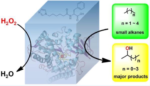 小分子烷烃碳-氢键的选择性羟化是长期以来面临的科学挑战,主要瓶颈在于烷烃分子碳-氢键的键解离能比相应醇产物更高,导致传统的化学氧化容易产生过度氧化产物等。虽然自然界中存在可以直接选择氧化小分子烷烃的天然酶(如甲烷单加氧酶MMO、丁烷单加氧酶BMO、真菌过加氧酶AaeUPO),但无论催化效率还是种类数量都还不能满足工业应用的需求。开发小分子烷烃碳-氢键选择性羟化的工程酶对于实现天然气的“气液转化”利用、满足日益增长的能源与化工原料来源需求和环境保护都有重要意义。