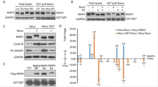 图: HPV16 E7通过与MAP4的相互作用降低MAP4的磷酸化水平