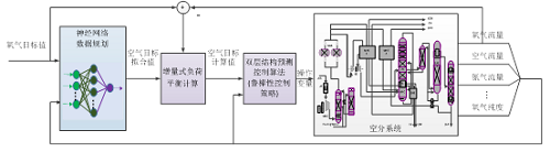 因此,该研究团队基于大量的理论与工程研究,设计了一种适用于大型空分装置的自动变负荷协同优化控制系统。针对装置热集成与物料再循环带来的高度耦合问题,提出一种基于弱耦合模型和被控变量优先级设定的鲁棒性优化策略;针对大范围变工况带来的高度非线性问题,提出一种基于神经网络的增量式负荷计算方法;最终辅以氧压机非线性滞回控制策略,实现了大型空分装置的自动变负荷协同优化控制。