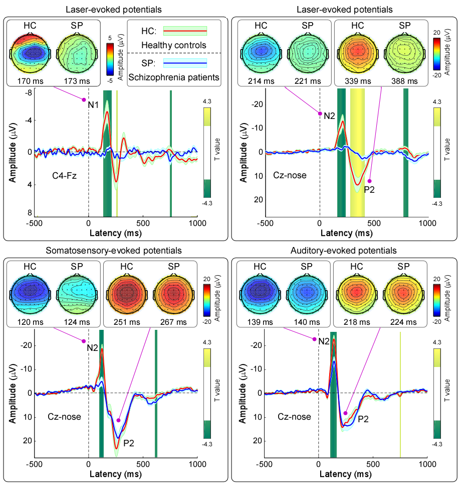鉴于上述问题,中国科学院心理研究所心理健康重点实验室研究员胡理与北京回龙观医院精神医学研究中心主任医师谭淑平开展了合作项目,结合行为测量、脑电和磁共振成像技术,通过比较多模态感觉刺激(痛觉、触觉和听觉)诱发的行为反应和脑响应特征,系统研究精神分裂症患者疼痛敏感性的特性及其内在神经机制。