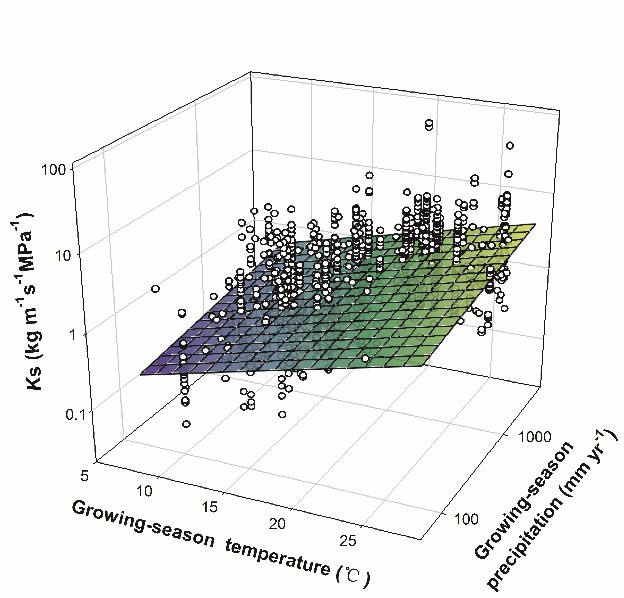 图:生长季温度和生长季降水对全球植物枝条导水率的影响
