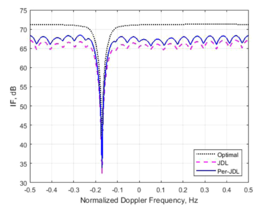 研究结果显示,当有足够的训练样本时,JDL STAP相比最优STAP性能损失为6dB,而Per-JDL STAP相比最优STAP性能损失为4dB。当训练样本不足时,JDL STAP算法的性能损失为25dB,而Per-JDL STAP算法的性能损失只有6dB。