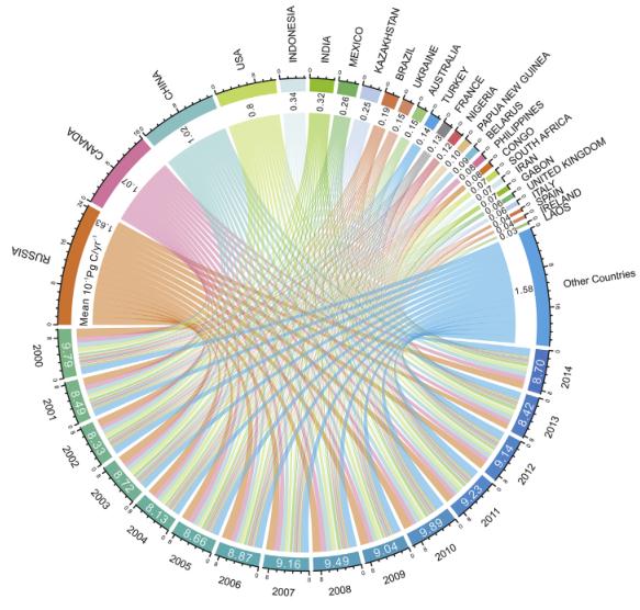 2000-2014年各国碳汇通量汇总