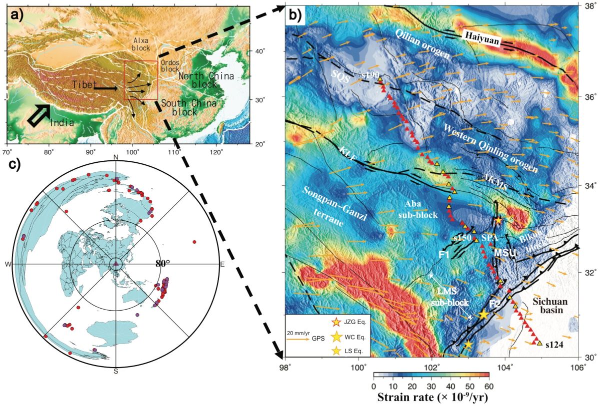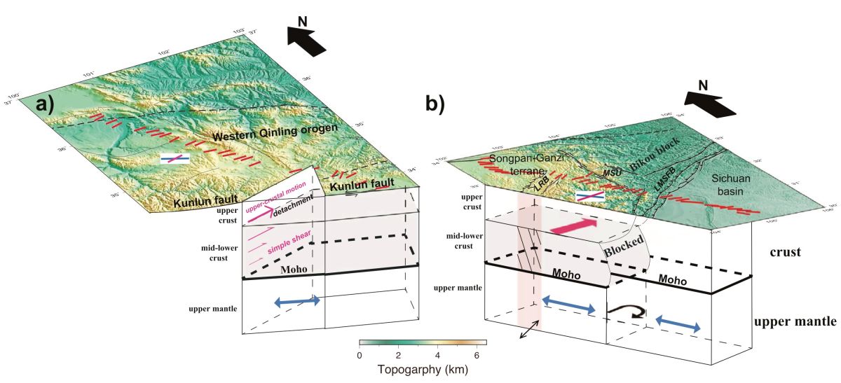 自新生代以来,印度-欧亚陆陆碰撞导致了青藏高原的隆升和广泛的陆内变形。青藏高原东缘和东北缘是研究高原隆升、外向扩展及其与周边块体相互作用的关键区域。然而,当前对该区域的壳幔变形模式依然存在很大争议,提出了中下地壳流、岩石圈垂向一致性变形等不同的端元模型。