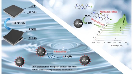 图:磷酸铁锂电池制备羟基磷酸铁用于吸附重金属铅和芬顿催化降解亚甲基蓝