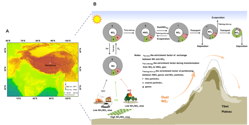 该研究得到国家重点研发计划、中科院前沿科学重点部署项目、国家自然科学基金委员会面上项目、大气重污染成因与治理攻关项目等的支持。研究成果“Isotopic evidence that recent agriculture overprints climate variability in nitrogen deposition to the Tibetan Plateau”于3月7日在线发表于Environment International。李郑杰为第一作者,方运霆和Meredith G. Hastings为共同通讯作者,田立德等为合作作者。