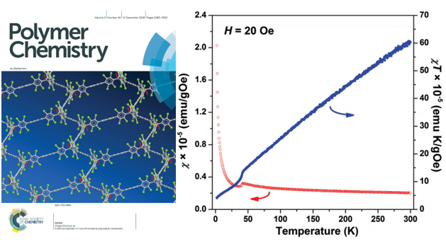 图2:二维反铁磁聚自由基纳米片的封面以及磁性数据
