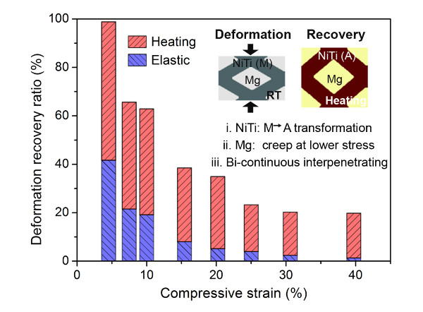图3:新型镁-镍钛仿生复合材料在不同应变条件下的形状记忆功能与微观回复机制