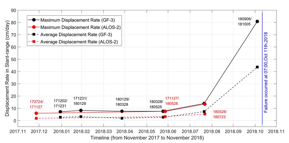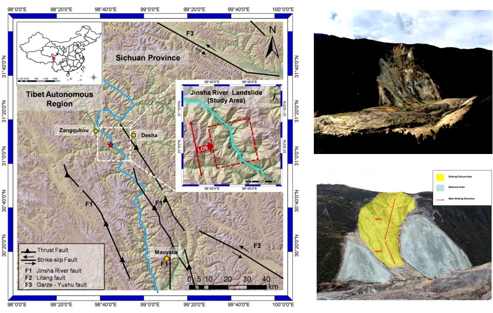 科研人员利用该技术成果对2018年金沙江滑坡(中国西藏)成灾前的多幅SAR数据进行处理,研究了该滑坡的演变过程。与传统方法相比,该方法提高了运算效率,减少了结果的不确定性。SAR数据来自中国高分3号(GF-3)卫星和日本陆地观测卫星(ALOS PALSAR-2),其中GF-3卫星SAR载荷由空天信息创新研究院航天微波遥感系统部抓总研制。文章还分析了该滑坡的时空位移模式,推测金沙江滑坡极可能属推覆式滑坡。这项研究证明了SAR遥感在全球滑坡监测中的作用,尤其是在地面实况数据稀缺的情况下。
